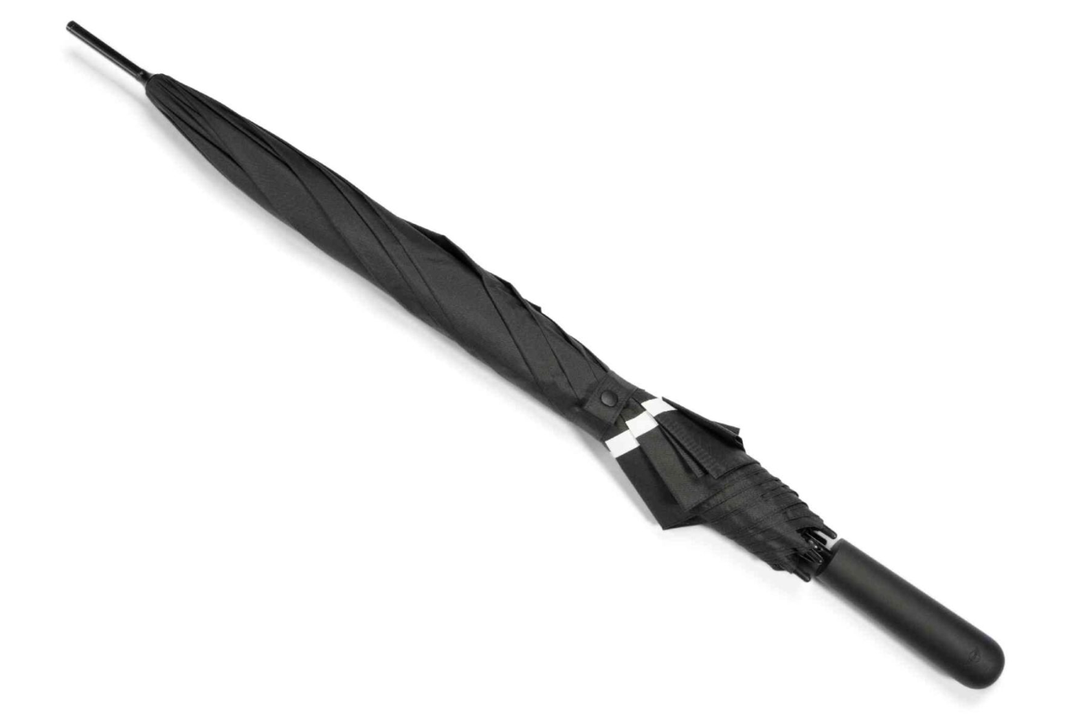 Der JCW Stockschirm vereint markantes Design mit hoher Funktionalität. Das reflektierende Logo und der Streifen-Print setzen sportliche Akzente, während der robuste Aufbau Windgeschwindigkeiten bis zu 120km/h standhält. Mit Knopfdruck-Öffnung und personalisiertem Griff ist er der perfekte Begleiter für stürmische Tage mit Stil.